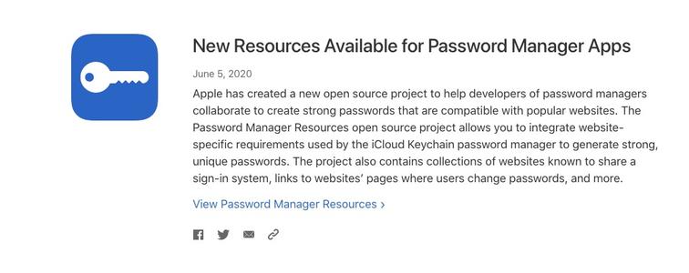 所謂的“密碼管理器資源”計(jì)劃是Apple的幾個(gè)開源項(xiàng)目之一,該計(jì)劃允許密碼管理器應(yīng)用程序?qū)Cloud Keychain密碼管理器使用的網(wǎng)站的特定要求集成到自己的應(yīng)用程序中。Apple的目標(biāo)是允許加密應(yīng)用程序開發(fā)人員在開發(fā)資源上進(jìn)行協(xié)作,以提高質(zhì)量,記錄特定于站點(diǎn)的行為并提高用戶信任度。